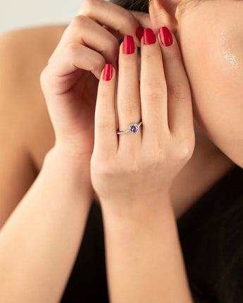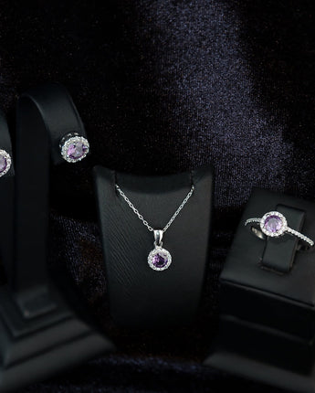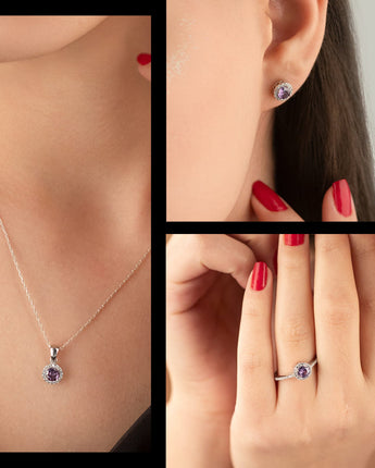 Purple Single Stone Jewelry Set 3 pieces: Necklace, Ring & Earrings - Valentine's Day Gift - 925 Sterling Silver Jewelry Set - Gift for Her - Handmade Pendant - Gift for Wife