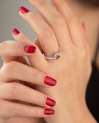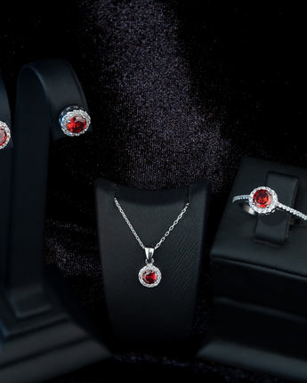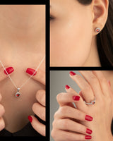 Red Solitaire Shape Jewelry Set 3 pieces: Necklace, Ring & Earrings - Valentine's Day Gift - 925 Sterling Silver Jewelry Set - Gift for Her - Handmade Pendant - Gift for Wife