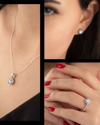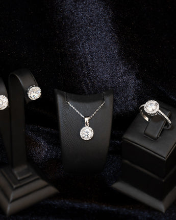 Row Solitaire Jewelry Set 3 pieces: Necklace, Ring & Earrings - Valentine's Day Gift - 925 Sterling Silver Jewelry Set - Gift for Her - Handmade Pendant - Gift for Wife