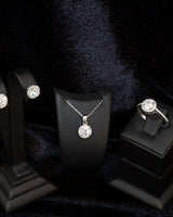 925 Sterling Silver Row Solitaire Jewelry Set 3 Pieces: Necklace, Ring & Earrings