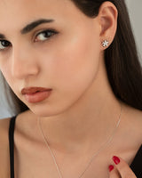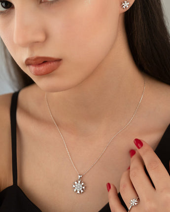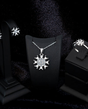 925 Sterling Silver Stone Flower Shape Set 3 Pieces: Necklace, Ring & Earrings
