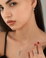 Three Stone Daisy Shape Jewelry Set 3 pieces: Necklace, Ring & Earrings - Valentine's Day Gift - 925 Sterling Silver Jewelry Set - Gift for Her - Handmade Pendant - Gift for Wife