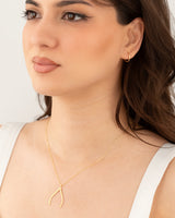 Embrace the elegance and functionality of our Gold Wishbone Ring Holder Necklace. Crafted with the finest 925 sterling silver and 14K gold plating, this necklace is not just a piece of jewelry but a practical accessory designed to keep your rings safe and secure. The dainty yet durable design features a wishbone pendant, symbolizing good luck and positivity, making it a perfect gift for those special moments.