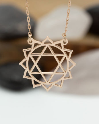14K Solid Gold Heart Chakra Necklace