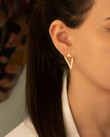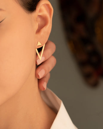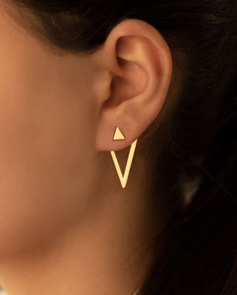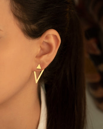 18K Real Gold Ear Jacket Earring - Valentine's Day Gift - 14K Right Triangle Earring - Unique Earring - Double Earring - Geometric Earring