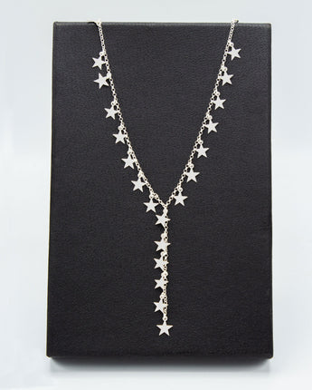 Unleash your inner star with our 925 Sterling Silver Dangling Stars Necklace! Made with high-quality sterling silver, this necklace features delicate dangling stars that add a touch of elegance to any outfit. Perfect for any occasion, this necklace will make you shine like the star you are!