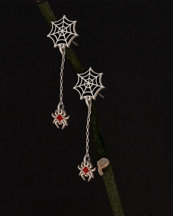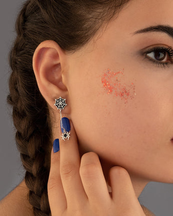 Enamel Spider Web Dangle and Drop Earrings - Halloween Earrings