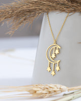 Moon And Star Necklace - Shooting Star Necklace - Crescent Necklace - Moon And Star Layered Necklace - Christmas Gift - Gift For Mother
