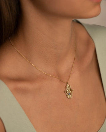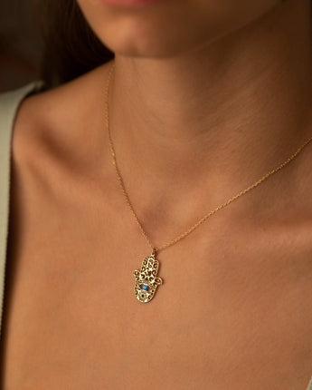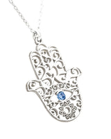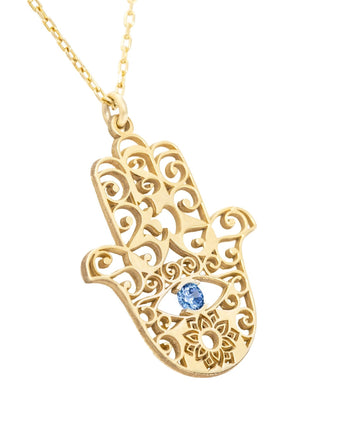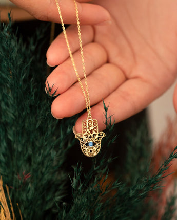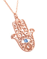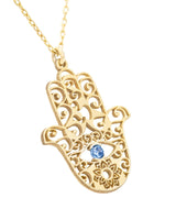 14K Solid Gold Hand of Fatima With Birthstones Necklace